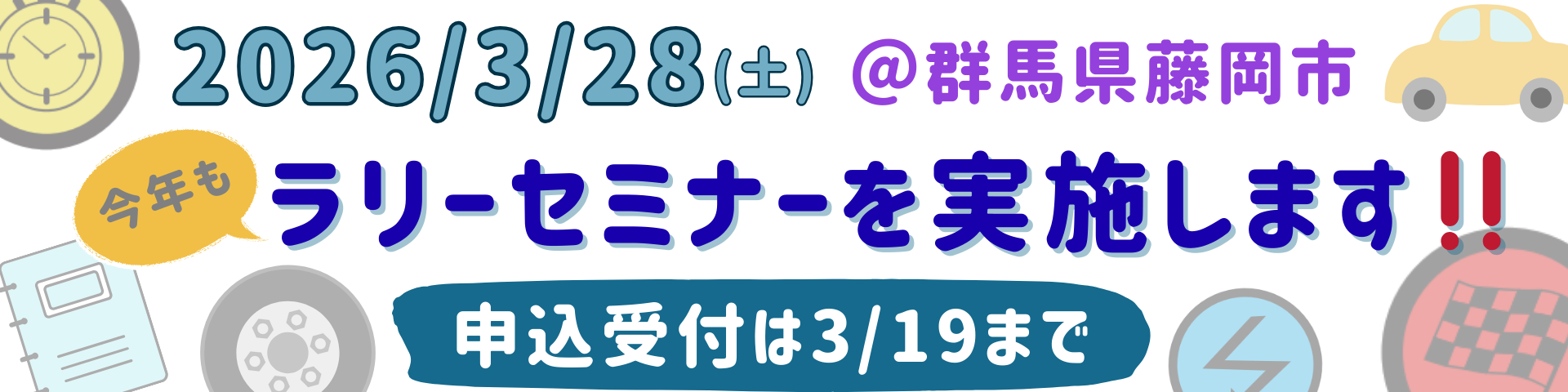 2026年の群馬ラリーシリーズのシーズン開始前に、初級者向けラリーセミナーを開催します。県戦ラリーからWRCまで、長年運営しているベテランスタッフが講義を行い、実技でのサポートもいたします。特に、初級者の選手が悩みやすい・陥りやすいポイントを押さえて説明します。