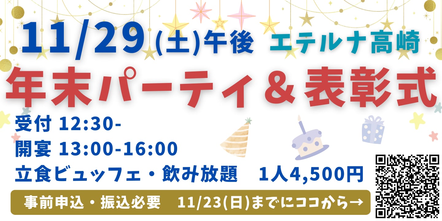 【申込〆切は11/23(日)まで】年末パーティ&シリーズ表彰式のお知らせ